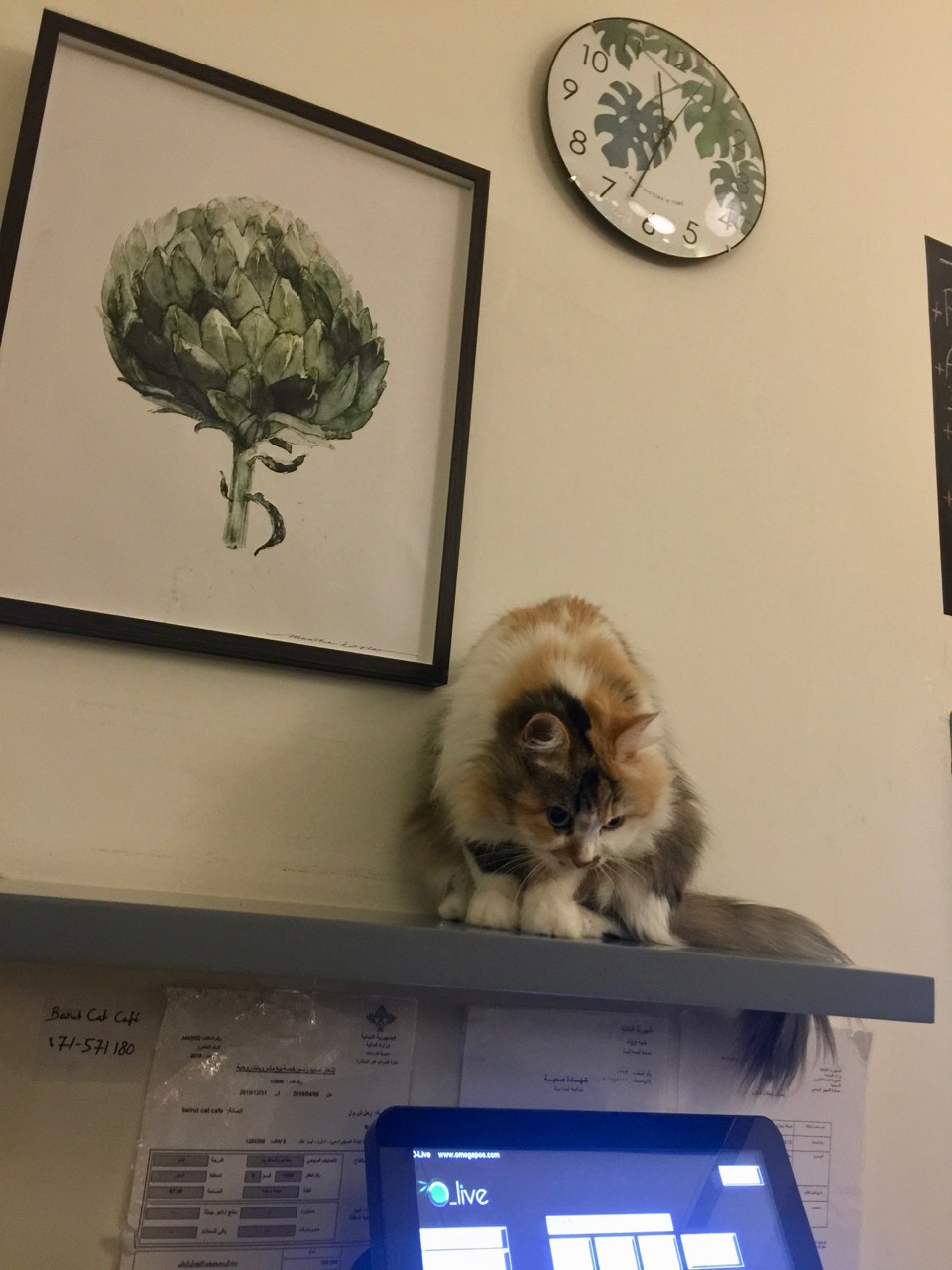 the Beirut Cat Café, in the Mar Mikhael area not far from us. I think of it as